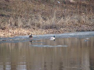 As we frolicked in the yard enjoying the warm sun, we had a couple visitors who spent quite a long time enjoying the last patch of ice on the pond.